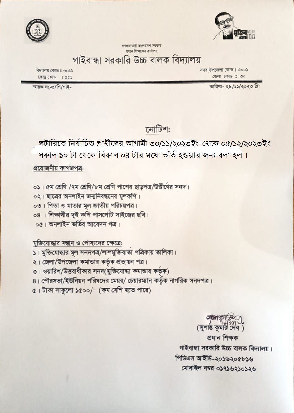 ভর্তি বিজ্ঞপ্তি-২০২৬