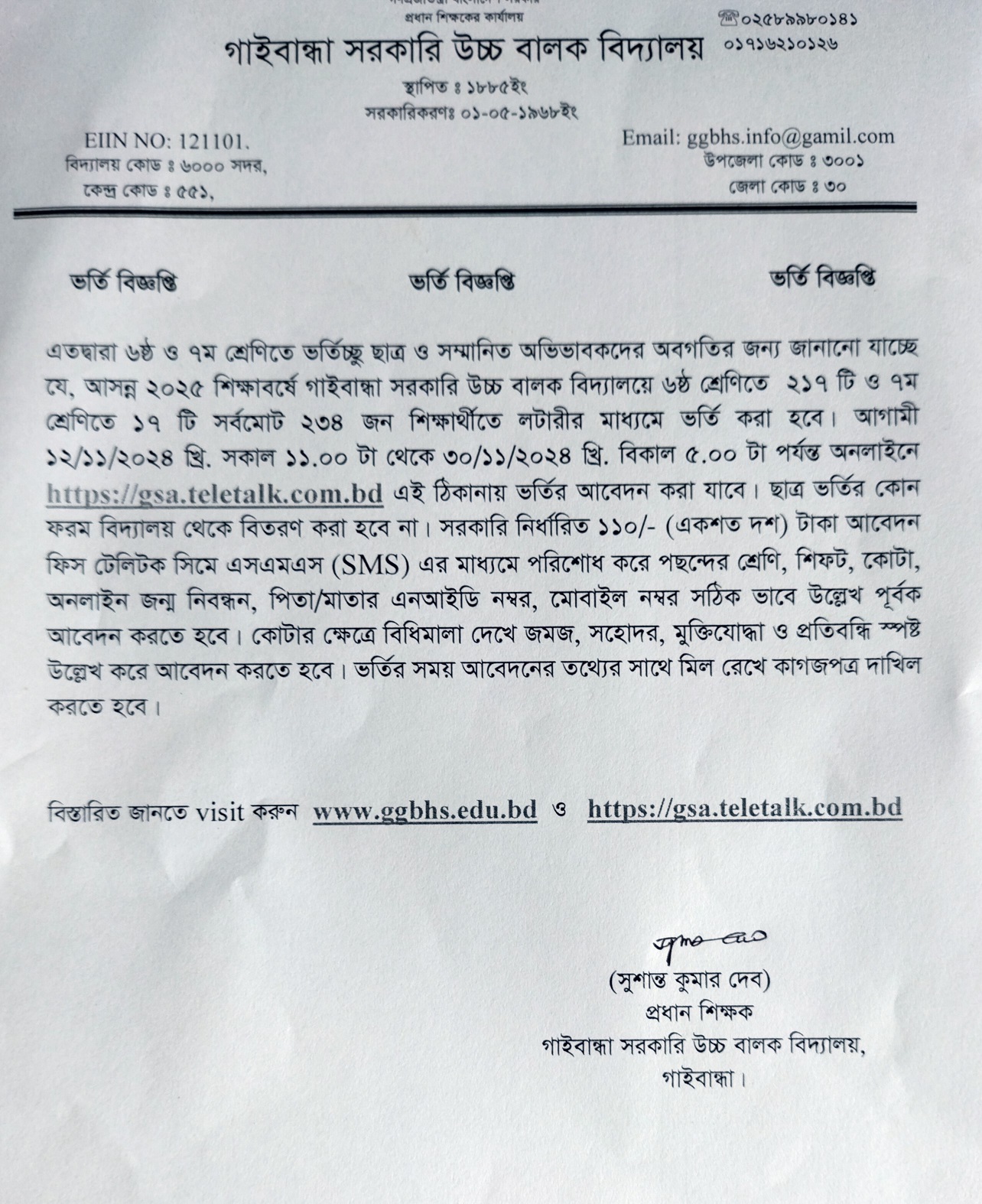 ভর্তি বিজ্ঞপ্তি -২০২৫